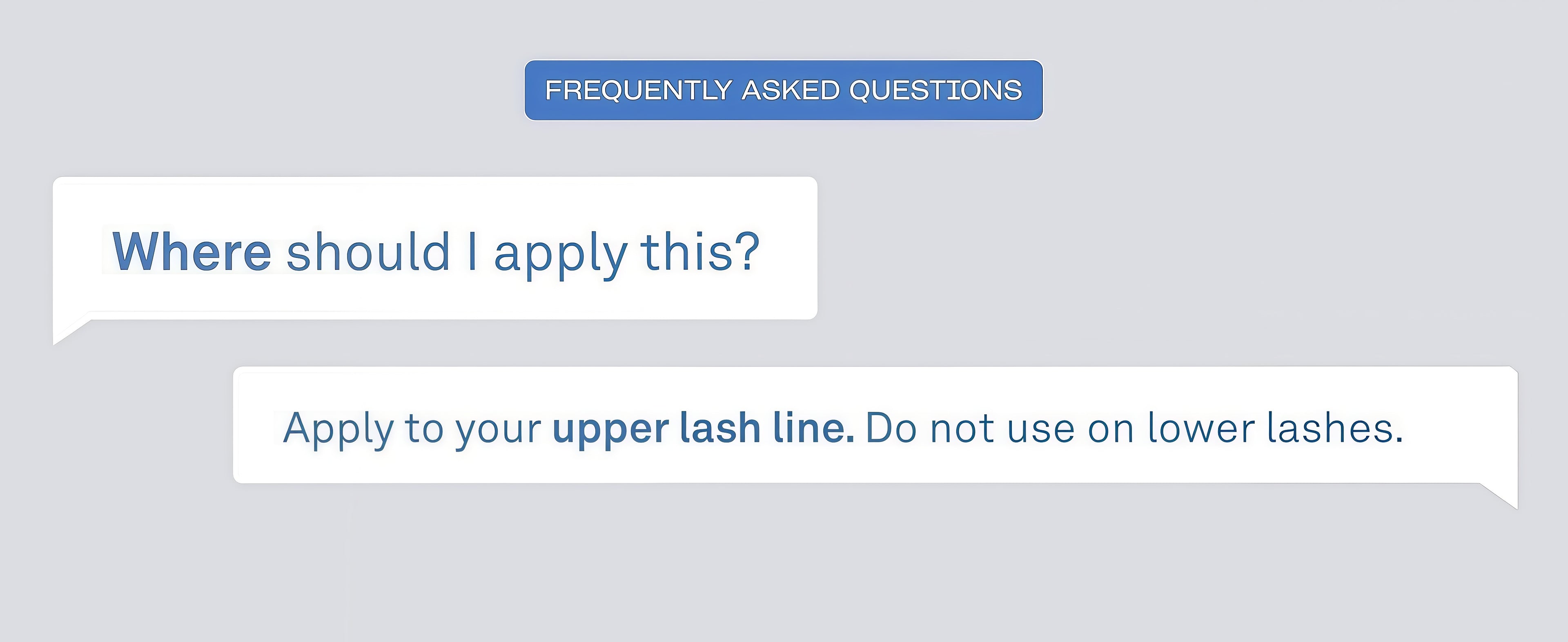 Apply to your upper lash line on clean, dry skin. Do not use on lower lash line.